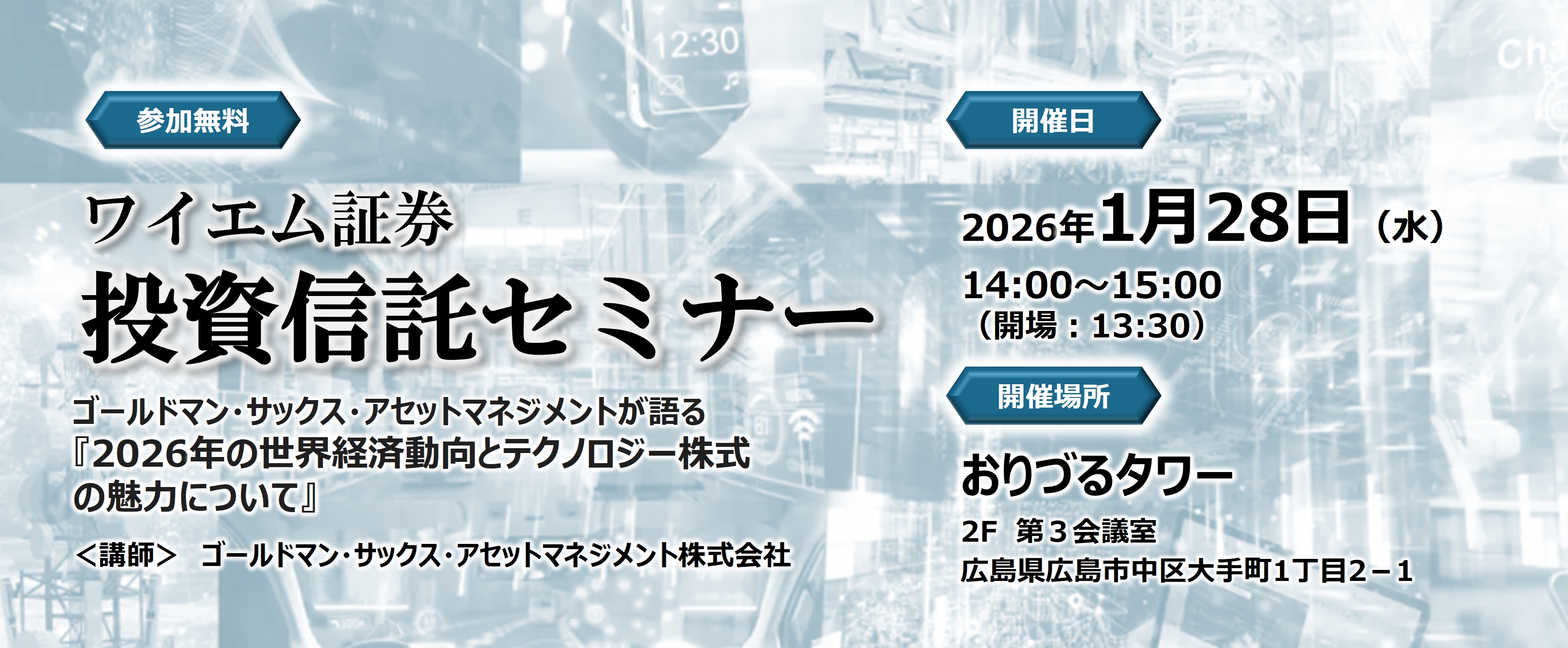 | セミナー名 | ゴールドマン・サックス・アセット・マネジメントが語る 『2026年の世界経済動向とテクノロジー株式の魅力について』 |
